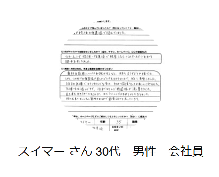 施術後に起こる反応や今後の過ごし方についての注意事項を説明させていただき終了となります。