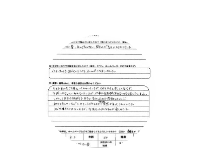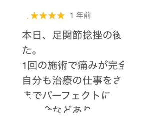 A:1回で症状が改善される方もいます。しかし、それを保証するものではありません。短期間での改善を目指し、できる限りの施術をさせていただきます。